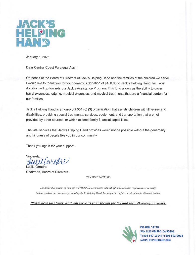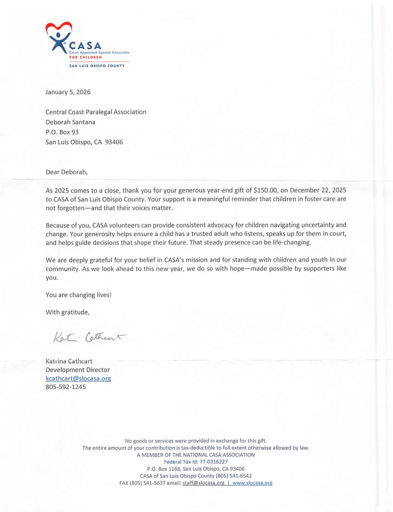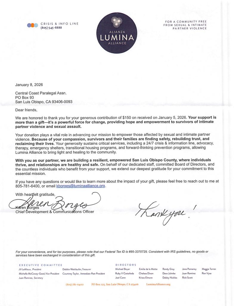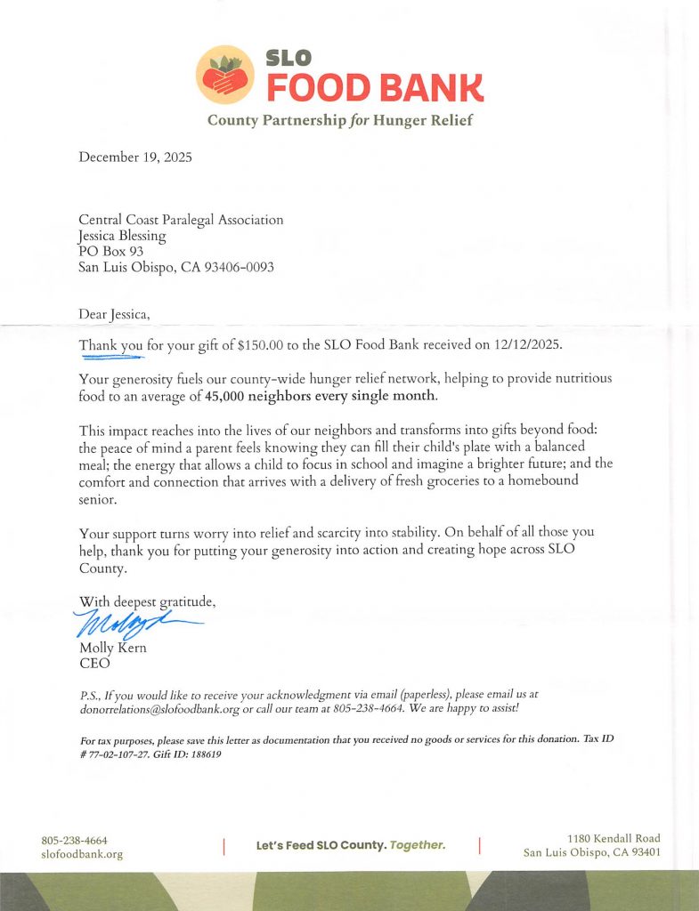 – Advancing the Paralegal Profession in San Luis Obispo County Since 1982 –
