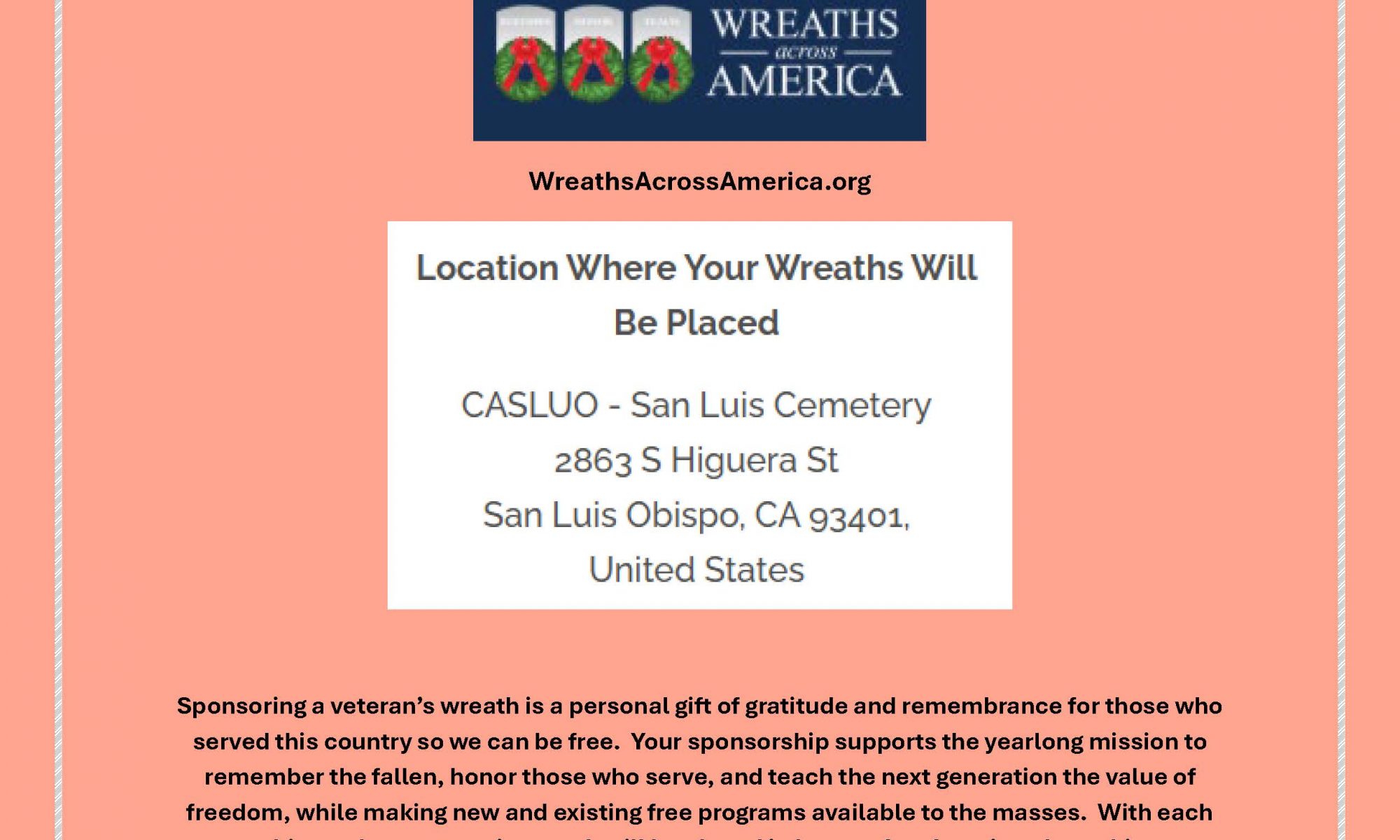 Please Visit: www.WreathsAcrossAmerica.org for more information
