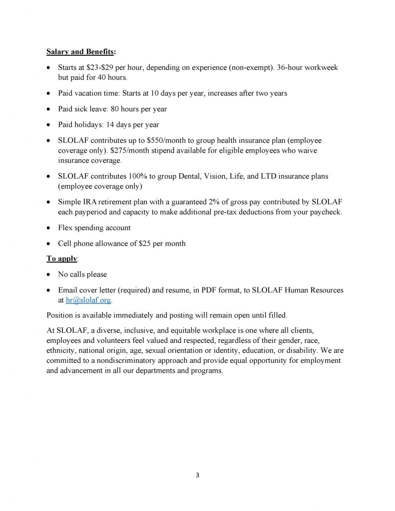 • Email cover letter (required) and resume, in PDF format, to SLOLAF Human Resources at hr@slolaf.org.