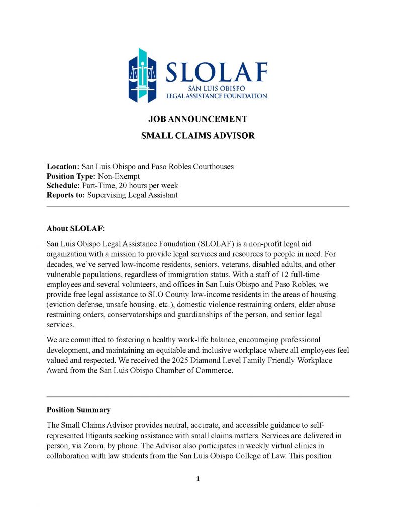 Resume can be sent to Imoore@hhcb-slo.com.